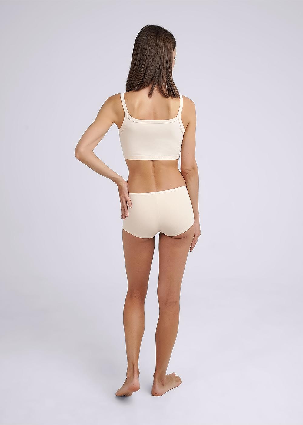 Майка-топ женская из эластичного хлопкового полотна. Двойной перед. Узкая бретель. По низу широкая резинка.