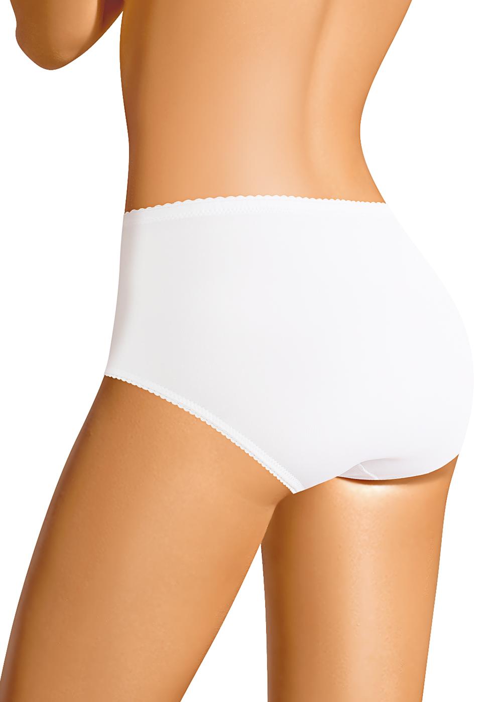 Трусы-макси женские из полиамида. Обработка краев - резинка с фестоном. По переду вставки из кружева и бант. Производство Китай.