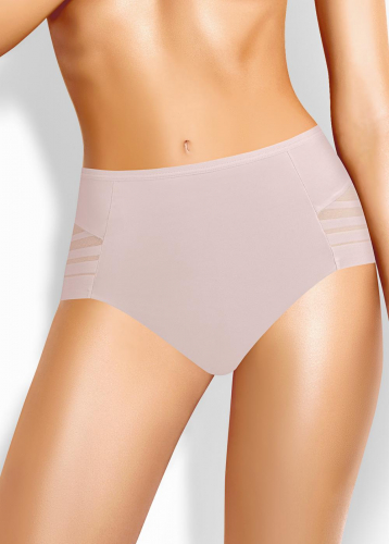 трусы макси на средней посадке из гладкого полиамида и вставками из сетчатого полотна, необработанный край не распускается и незаметен под одеждой