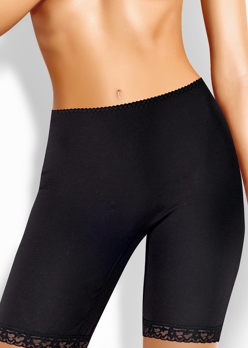 Трусы панталоны женские из плотного эластичного хлопкового полотна. Обработка по талии - ажурная резинка с фестоном, по ноге - узкое кружево.
