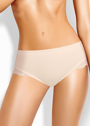 Трусы шорты женские из эластичного хлопкового полотна. Обработка краев по талии ажурная резинка. По ноге - рез с кружевными вставками.