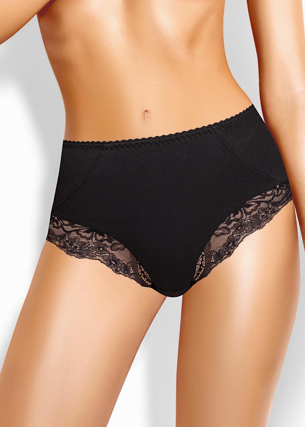Трусы макси утяжка женские из эластичного хлопкового полотна. Обработка краев по талии ажурная резинка (точечный зигзаг). По ноге переда и спинки рез с кружевными вставками.