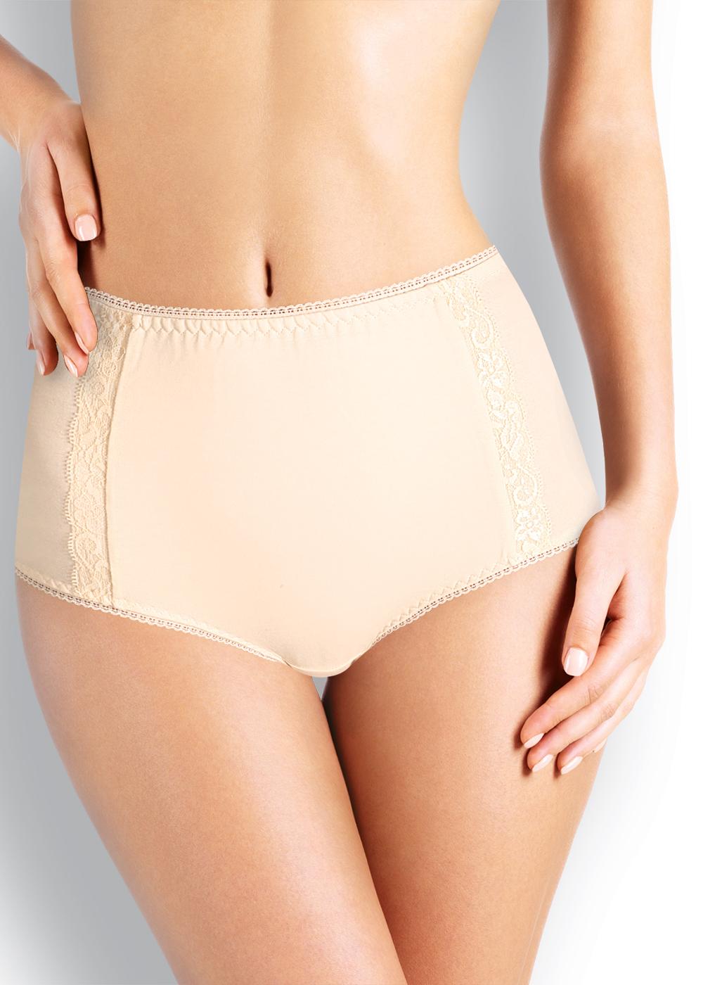 Трусы макси утяжка женские из плотного эластичного хлопкового полотна. По переду отделка кружевом и двойной слой основного полотна. Обработка краев - ажурной резинкой с фестоном.