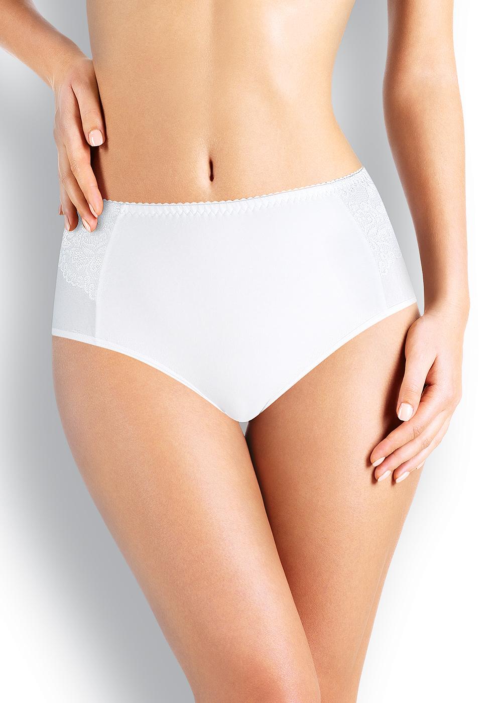 Трусы макси утяжка женские из плотного эластичного хлопкового полотна. По переду отделка кружевом и двойной слой основного полотна. Обработка краев по талии - ажурной резинкой с фестоном, по ноге - окантовкой.