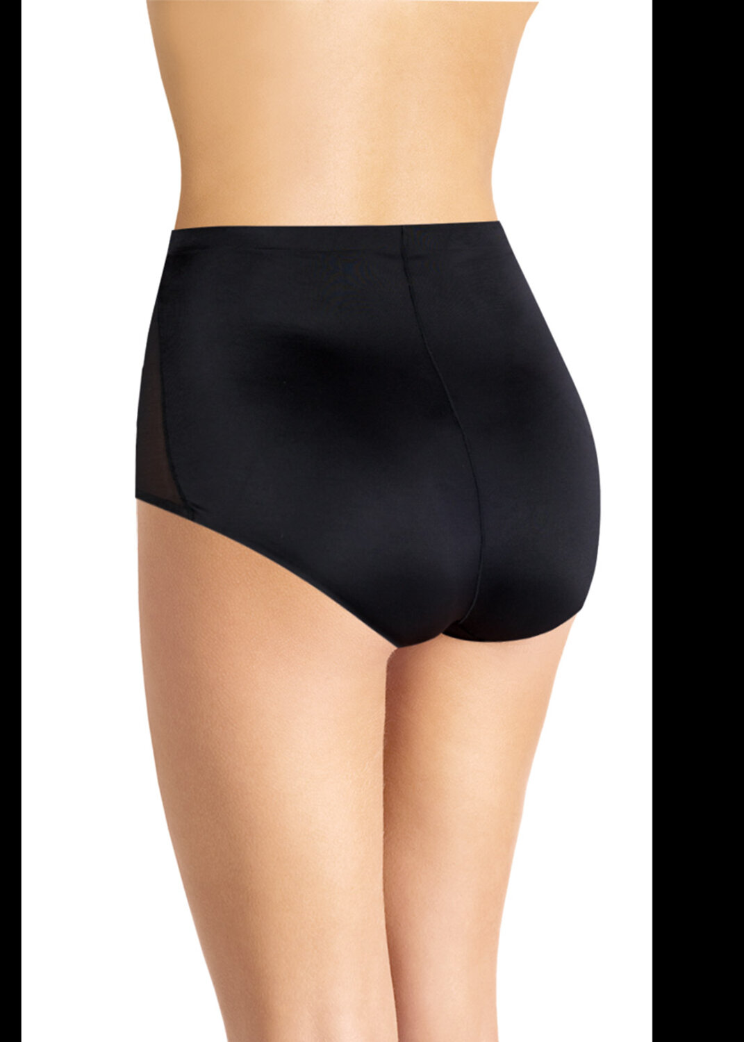 Трусы-макси женские из полиамида с эластаном. По переду вставки из сетки. Обработка краев - подклееный край. Хлопковая ластовица.