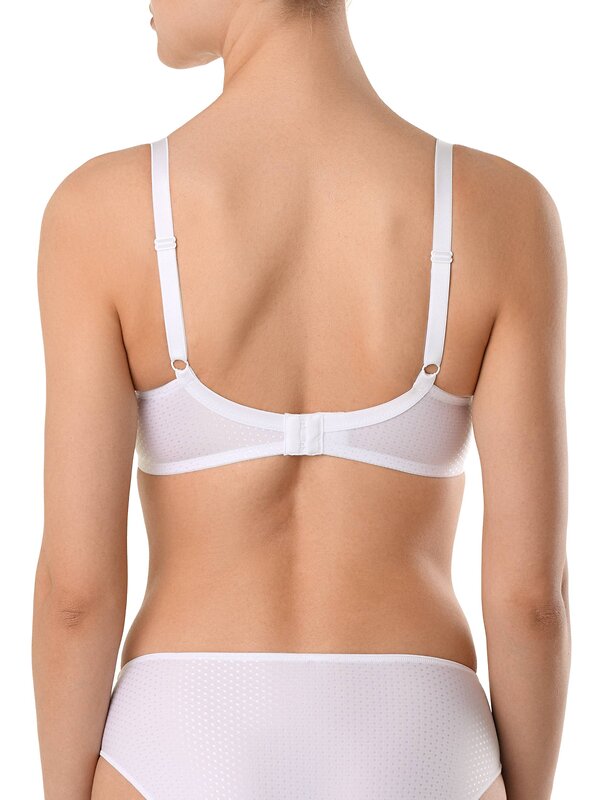 Бюстгальтер серии VOYAGE отличается чистотой линий и исключительным комфортом. Выполненный из полотна с деликатным жаккардовым рисунком «в горошек» и украшенный аппликациями макраме, бюстгальтер поможет создать одновременно простой и утонченный образ.