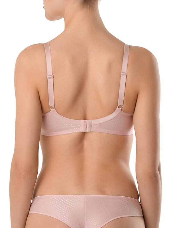Бюстгальтер серии VOYAGE отличается чистотой линий и исключительным комфортом. Выполненный из полотна с деликатным жаккардовым рисунком «в горошек» и украшенный аппликациями макраме, бюстгальтер поможет создать одновременно простой и утонченный образ.