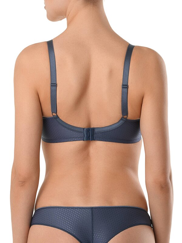 Бюстгальтер серии VOYAGE отличается чистотой линий и исключительным комфортом. Выполненный из полотна с деликатным жаккардовым рисунком «в горошек» и украшенный аппликациями макраме, бюстгальтер поможет создать одновременно простой и утонченный образ.