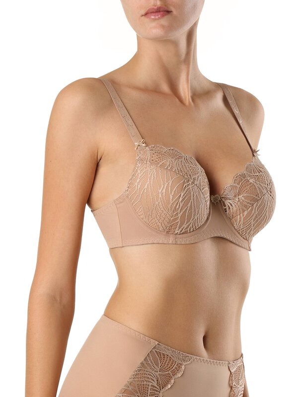 Классическая серия белья Aura создана из неэластичного функционального трикотажа и кружева с растительным рисунком. Белье эффектно подчеркивает женственные линии и гарантирует безупречную поддержку, необходимую для обладательниц пышных форм.