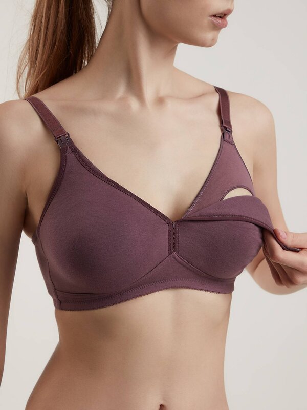 Застежка чашки легко отстегивается одной рукой, что позволит быстро снять чашку. Внутри чашек предусмотрена поддерживающая хлопковая деталь, которая слегка растягивается, когда молоко прибывает, но при этом обеспечивает необходимую поддержку для груди.