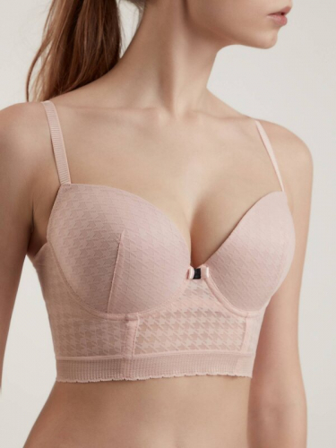Бантик и тесьма нюдового оттенка гармонично дополняют образ.