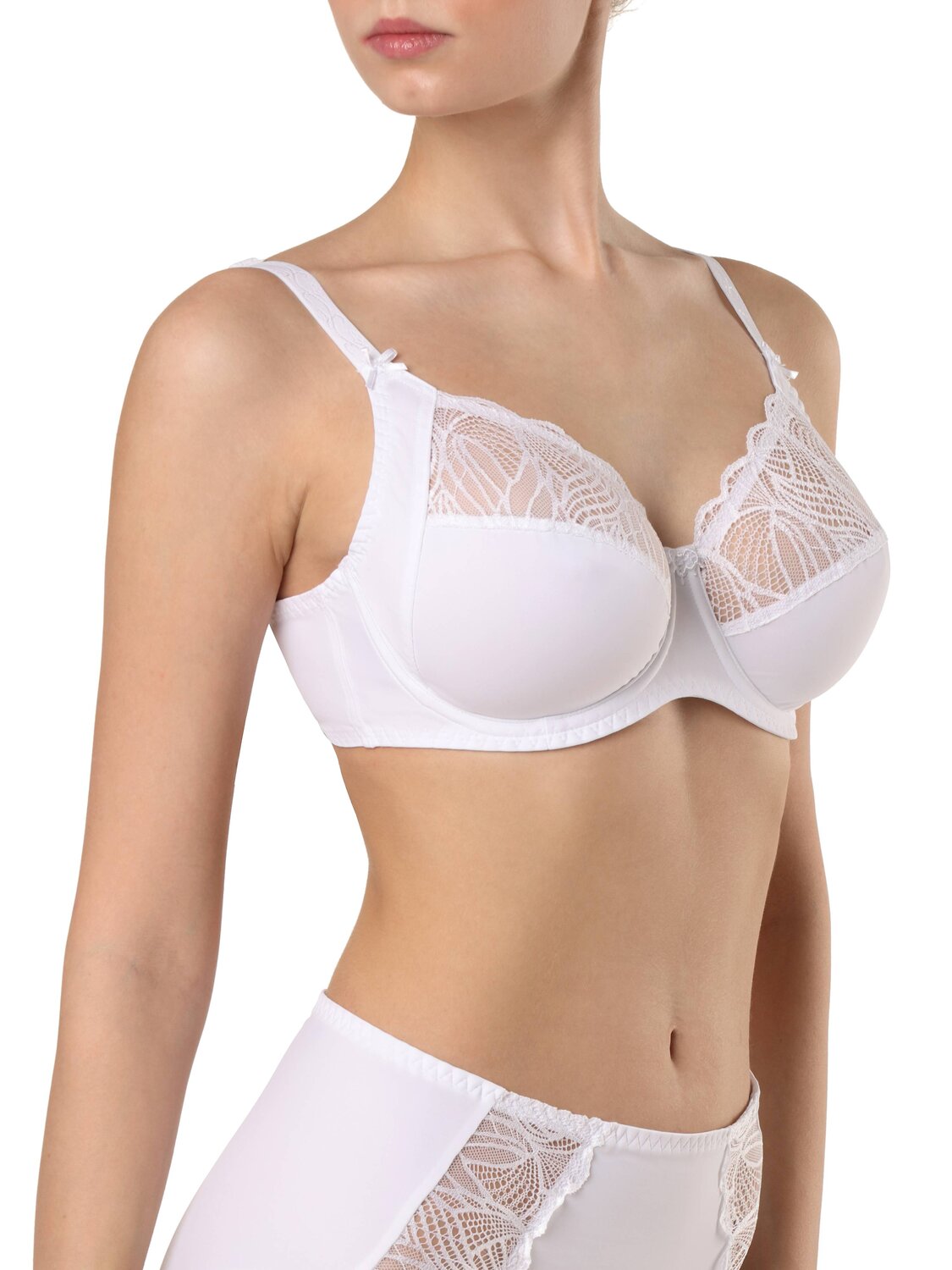 Классическая серия белья Aura создана из неэластичного функционального трикотажа и кружева с растительным рисунком. Белье эффектно подчеркивает женственные линии и гарантирует безупречную поддержку, необходимую для обладательниц пышных форм. • мягкая чашка на каркасах • боковая корректирующая деталь для дополнительной поддержки • регулируемые бретели • украшение ¬– вышивка-аппликация • широкий размерный ряд • безупречная поддержка и абсолютный комфорт.