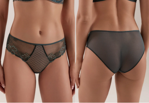 Бельё серии Desire из роскошного цветочного кружева, эластичной сетки с геометрическим рисунком и акцентными деталями подчеркнёт игривость, романтичность и притягательность образа. Изящная модель трусов слип отлично подчеркнёт фигуру, повторяя изгибы тела.