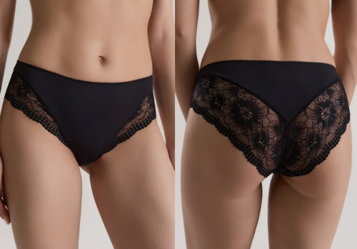 • по бокам неэластичное цветочное кружево с эффектом клиппинга