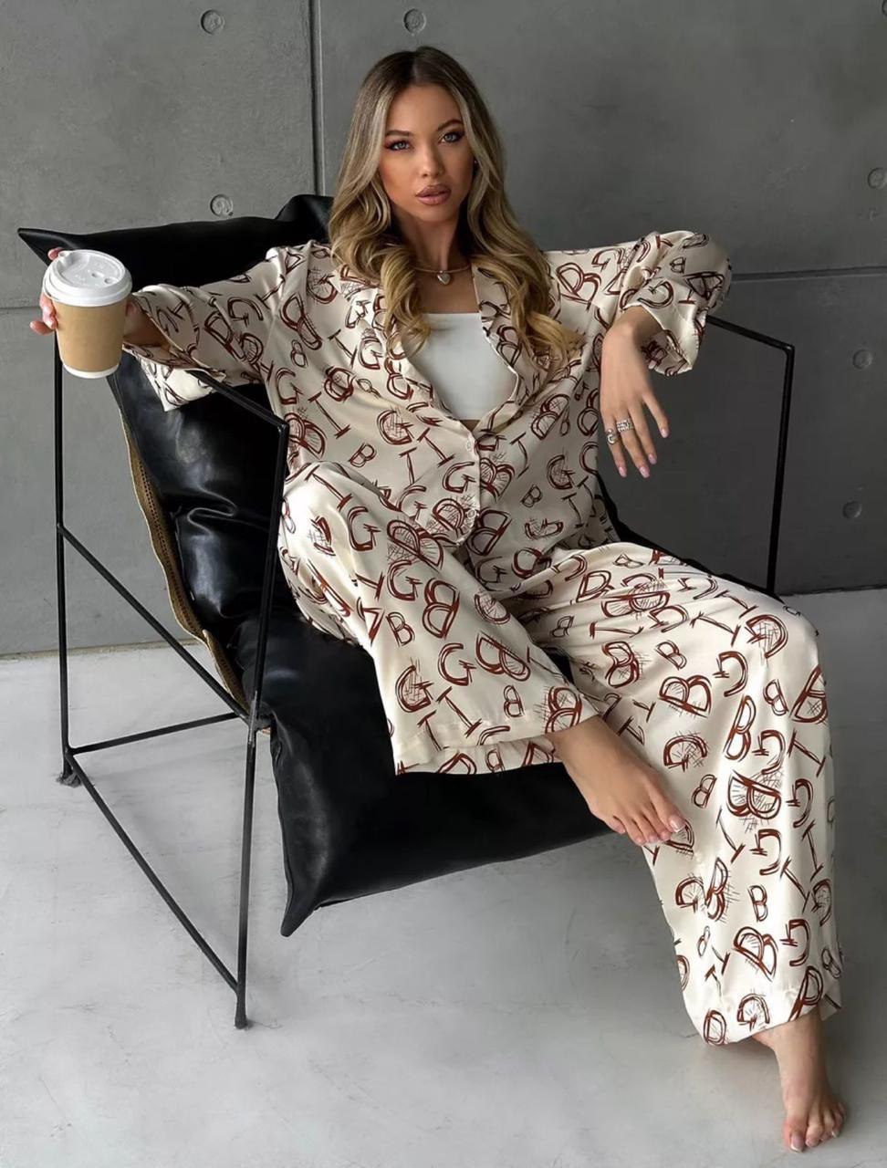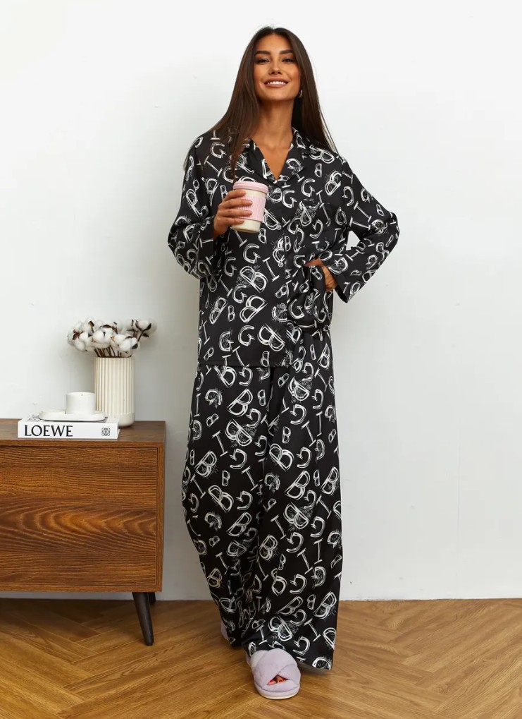 Домашний костюм (рубашка и брюки) БЕЖЕВЫЙ,ЧЕРНЫЙ