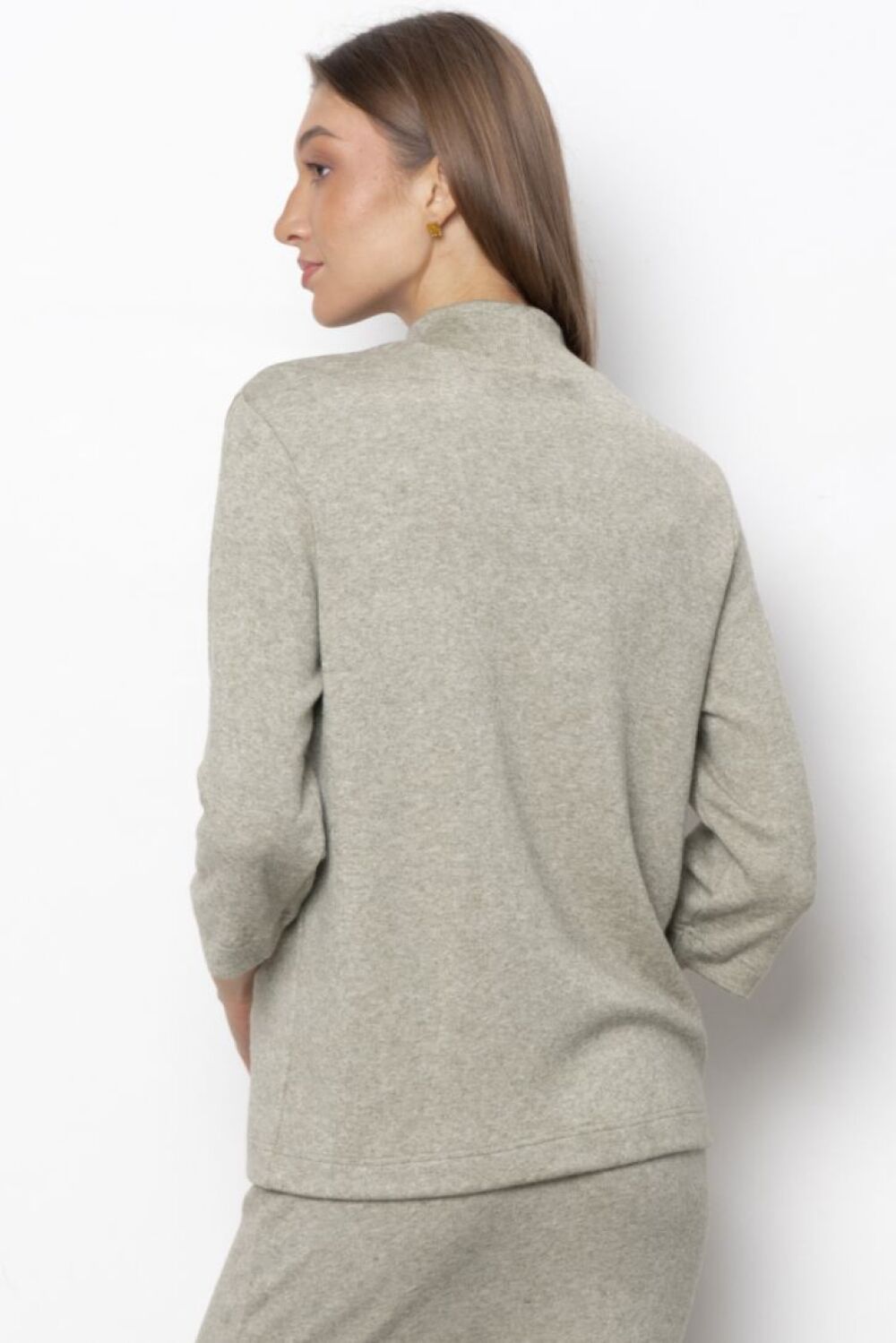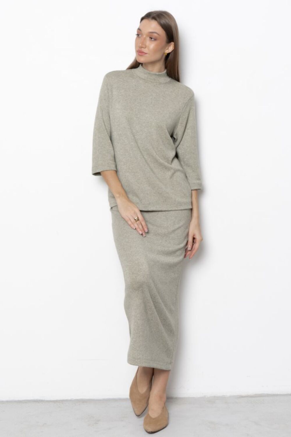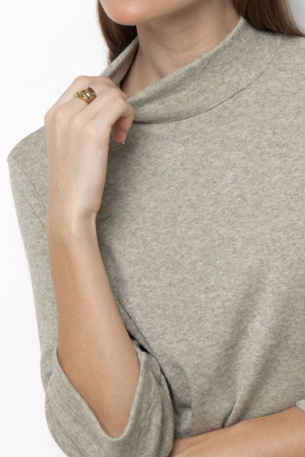 Джемпер свободного силуэта с высокой горловиной и рукавами ¾. Представлен в двух цветовых решениях."