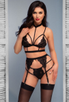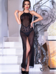 Черный S/M Сорочка трикини, силуэт песочные часы визуально вытягивает фигуру. Кружевной лиф на косточках формирует и поддерживает грудь, бретельки регулируются по длине, на спине застёжка-удлинитель. Юбочка из сетки. полиамид - 90%, эластан - 10%