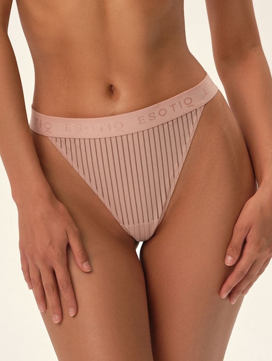 Бежевый 42(XL) Стильные женственные трусики стринги 41894 OSOM от европейского производителя Esotiq. Материал изделия в узорный рубчик с эластичной резинкой, трусики идеально подходят для ежедневного применения, хлопковая ластовица.Состав эластичных вставок 86% полиамид, 14% эластан. 91% полиамид, 9% эластан