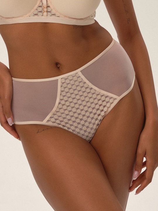 Пудровый 40(L), 42(XL), 44(XXL) Высокие трусики слипы 42177 OHARA от европейского производителя Esotiq. Хлопковая ластовица.Состав Кружево 90% полиэстер, 10% эластан;Сетка 89% полиамид, 11% эластанЛастовица 100% хлопок. 89% полиамид, 11% эластан