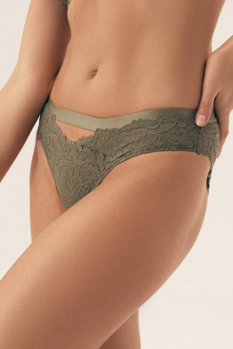 Хаки 40(L) Трусы стринги от европейского производителя Esotiq. Трусики средней комфортной посадки. Выполнены из цветочного кружева. Ластовица хлопковая. 88% полиамид, 12% эластан