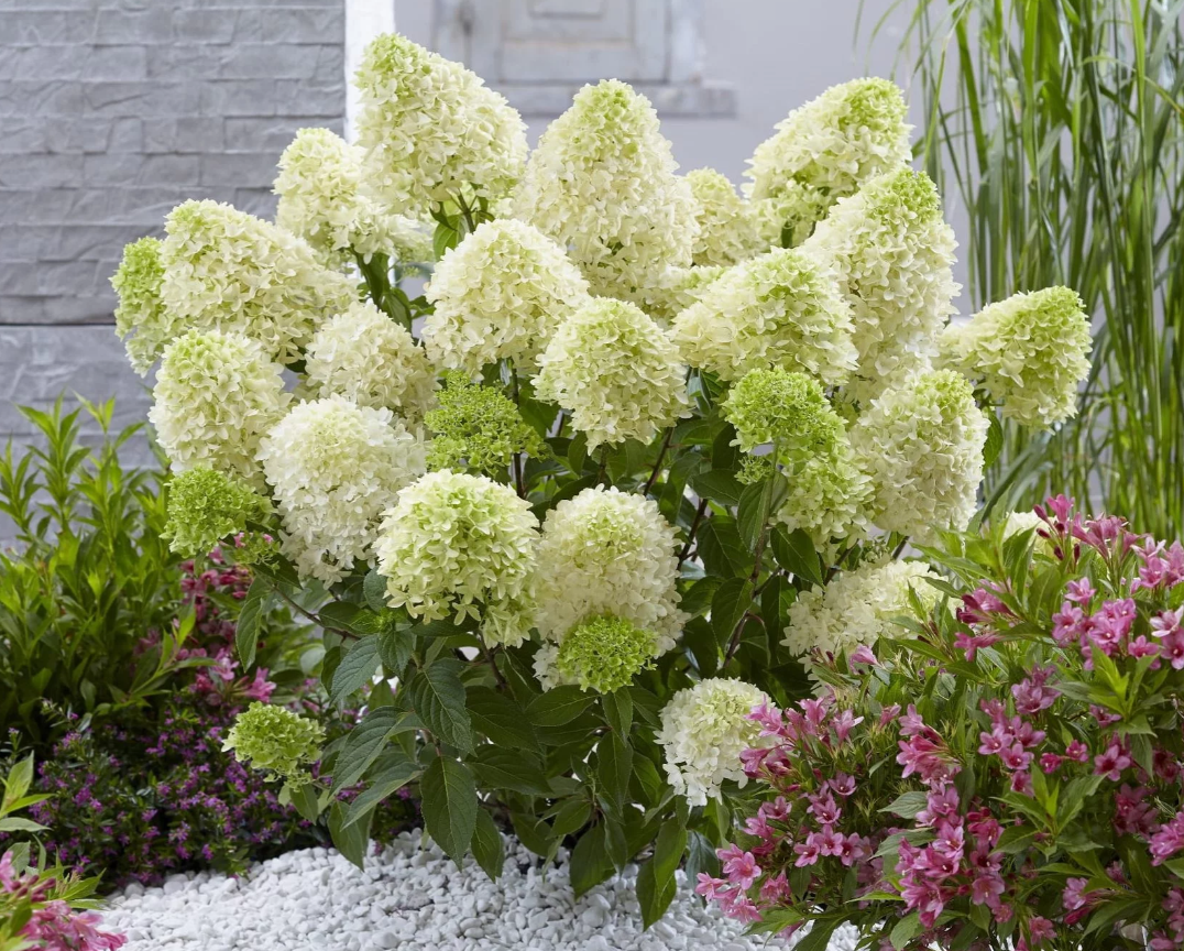Hydrangea paniculata «frenne» (skyfall) — прекрасная гортензия с чрезвычайно большими соцветиями. Цветки соцветий напоминают гиацинтовые, с удлиненными лепестками. Соцветия намного больше, чем аналогичные «limelight», и меняют окрас со светло-зеленого к белому и затем становятся светло-розовыми. Куст компактный всего 1,2 м в высоту и 70 см в ширину, что делает сорт идеальным как для посадки в контейнерах на балконах или патио, так и одиночных и групповых посадках.