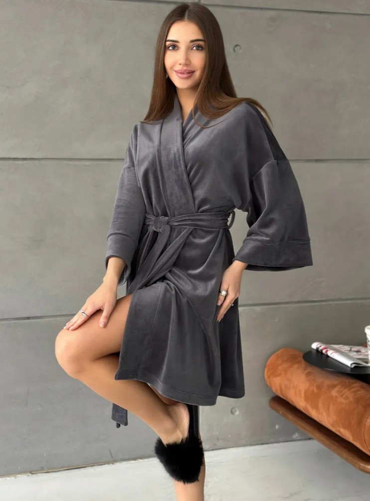 Халат (бархат) БЕЖЕВЫЙ,СИНИЙ,ЧЕРНЫЙ,ГРАФИТ