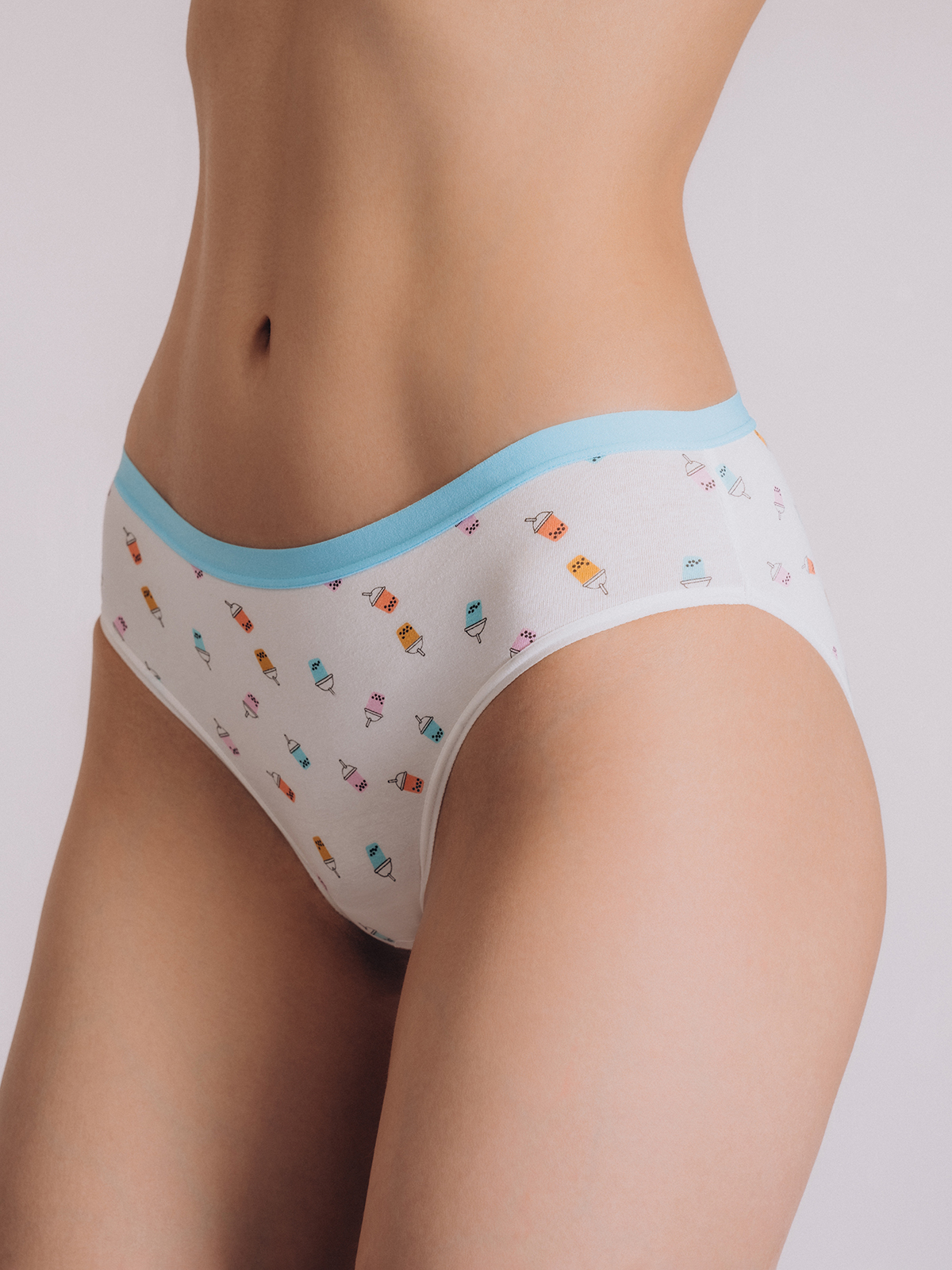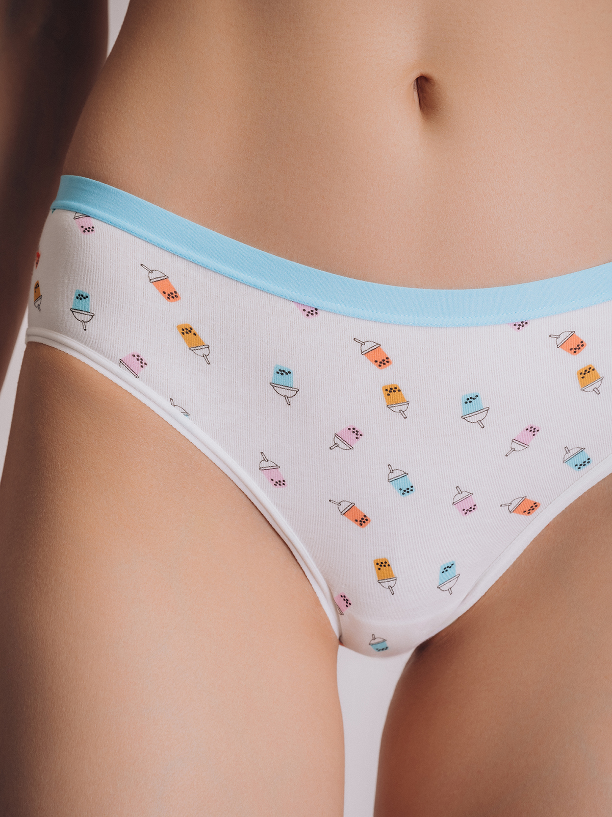 Белоснежные трусы-слипы от бренда Indefini с забавным принтом. Модель выполнена из мягкого хлопка с эластичной ярко-голубой резинкой, которая обеспечивает комфортную посадку без сдавливания