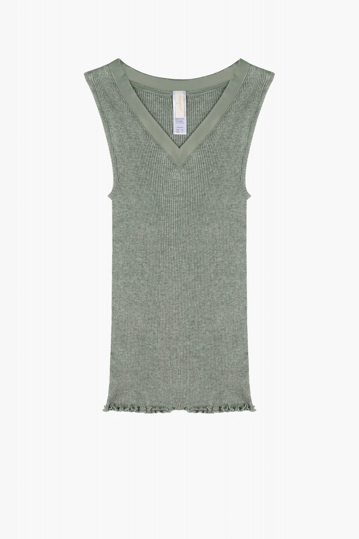 Женская майка в рубчик из модала и хлопка очень мягкая на ощупь, приятная к телу, хорошо впитывает влагу и не деформируется после стирки. Изделие имеет воротник с V-образным вырезом. Данная модель создает эффектный силуэт и подчеркивает женственность фигуры, не создает складки и лишний объем.
