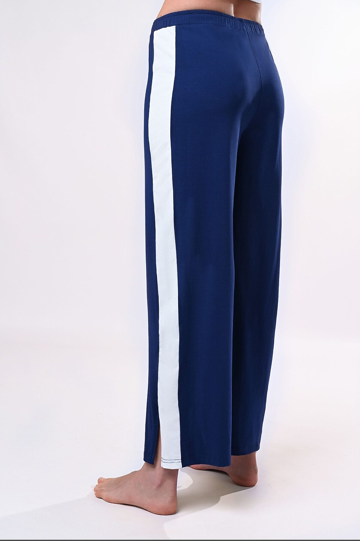 Женские брюки из модального материала комфортные и приятные на ощупь. Материал прочен, не подвержен усадке, не раздражает кожу и устойчив к износу. Брюки имеют вырезы снизу и широкую эластичную резинку на поясе, которая позволяет данной модели надёжно держаться при носке. Брюки идеально подойдут как для повседневной носки, так и для спортивных тренировок.