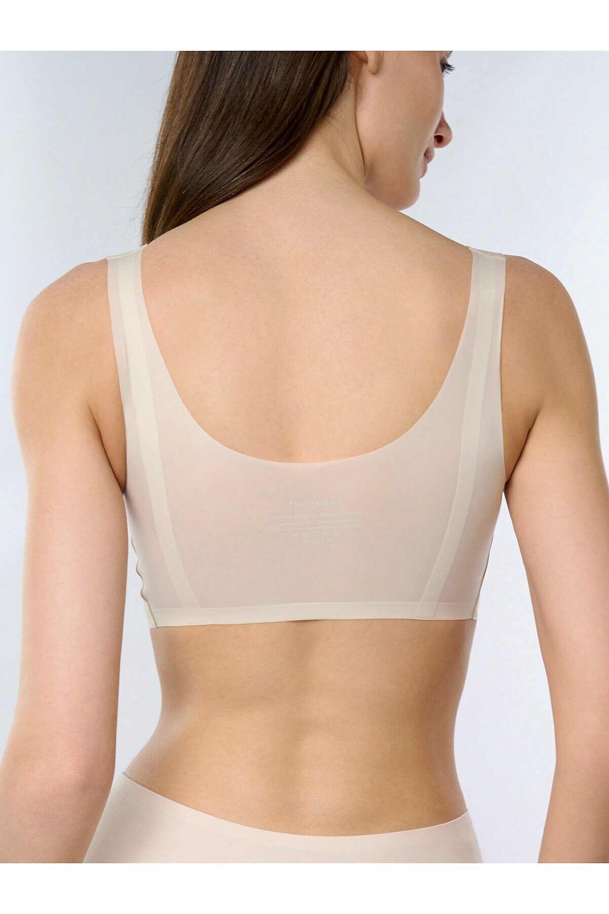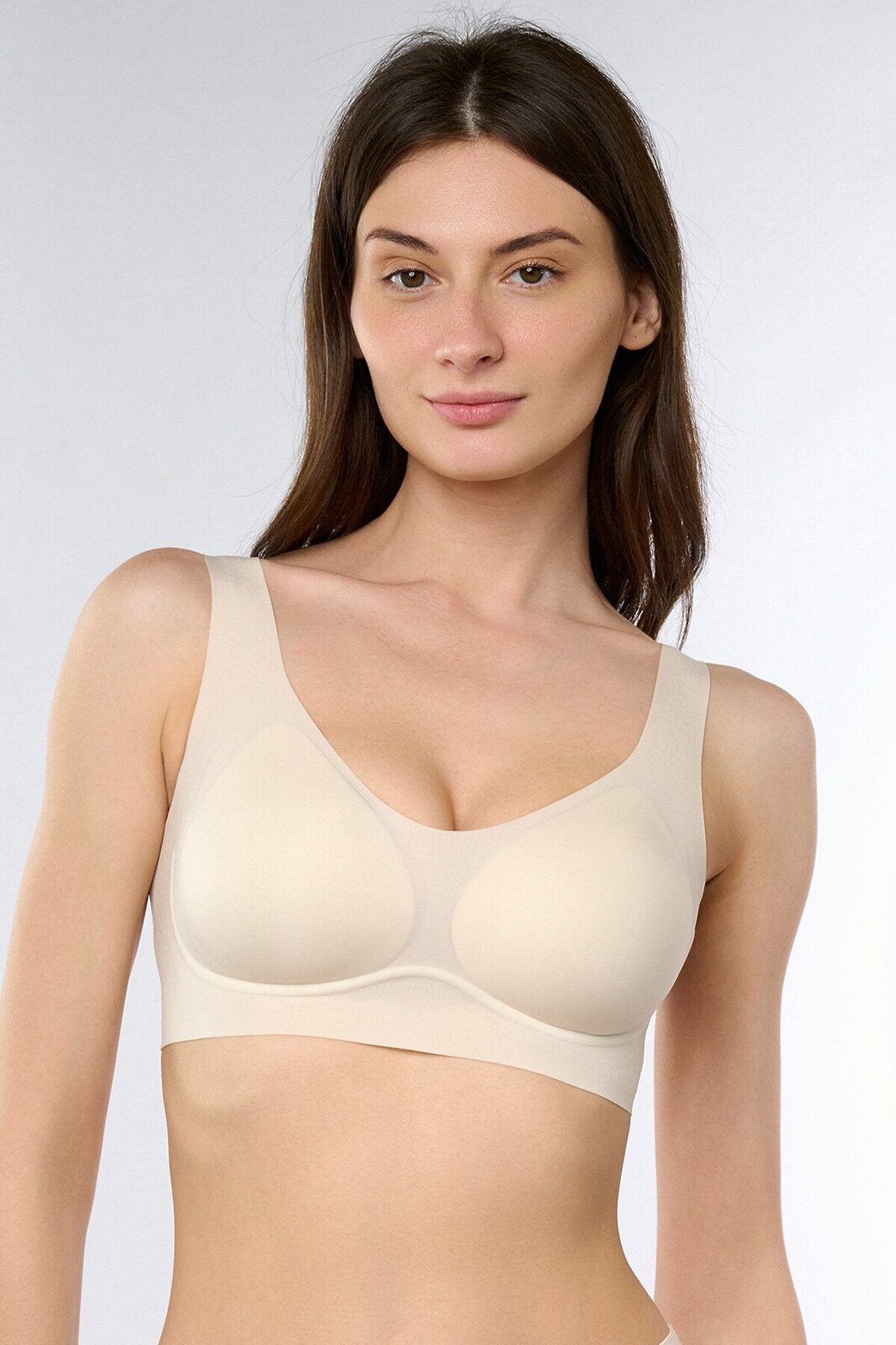 Белый бюстгальтер-топ без косточек. Современный белый бюстгальтер выполнен из мягкого эластичного материала, обеспечивающего комфортную посадку и свободу движений. Модель не имеет каркасных косточек и застёжек, что делает её максимально удобной для повседневной носки. Особенности: ✔ Широкие эластичные бретели – не натирают и не сползают, равномерно распределяют нагрузку ✔ Бесшовная технология – незаметен под одеждой, не оставляет следов на коже ✔ Мягкая, эластичная чашка – поддерживает грудь и сохраняет естественный силуэт (несъёмная) ✔ Лёгкая и дышащая ткань – комфортна даже в течение всего дня Идеальный выбор для тех, кто ценит комфорт, минимализм и современный стиль.