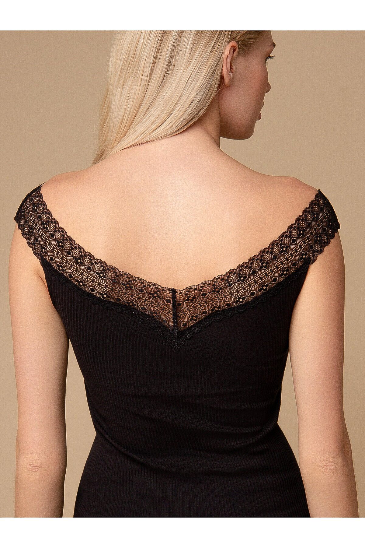 Женская майка с рубчатой текстурой, выполненная из мягкого хлопка и легкого модала, обладает приятными тактильными свойствами. Дизайн с текстурой в рубчик придает изделию актуальный вид и визуально подчеркивает контуры фигуры. Кружевные рукава добавляют утонченности, делая майку универсальным элементом, который сочетается с различными нарядами.