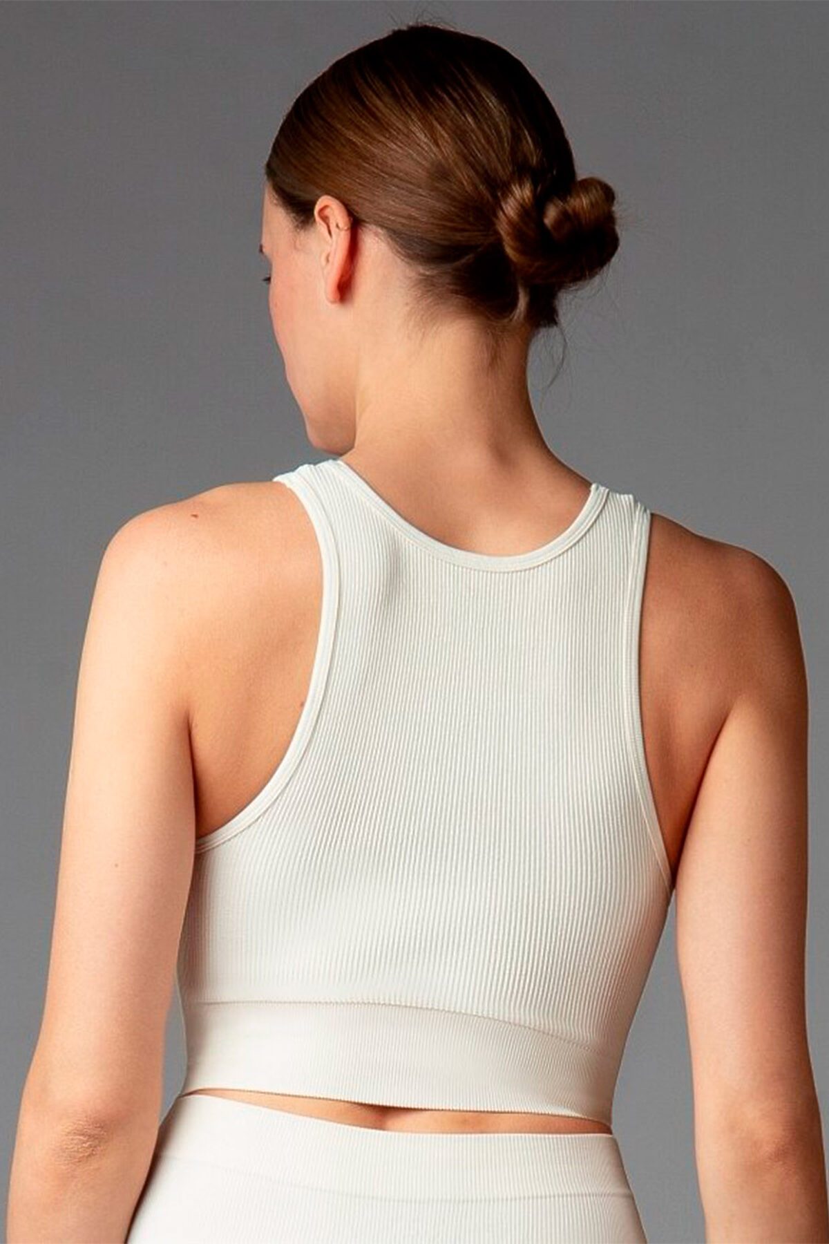 Женская майка-топ от торговой марки Индефини. Майка-топ из полиамида, белого цвета, в рубчик, на резинке, укороченная.