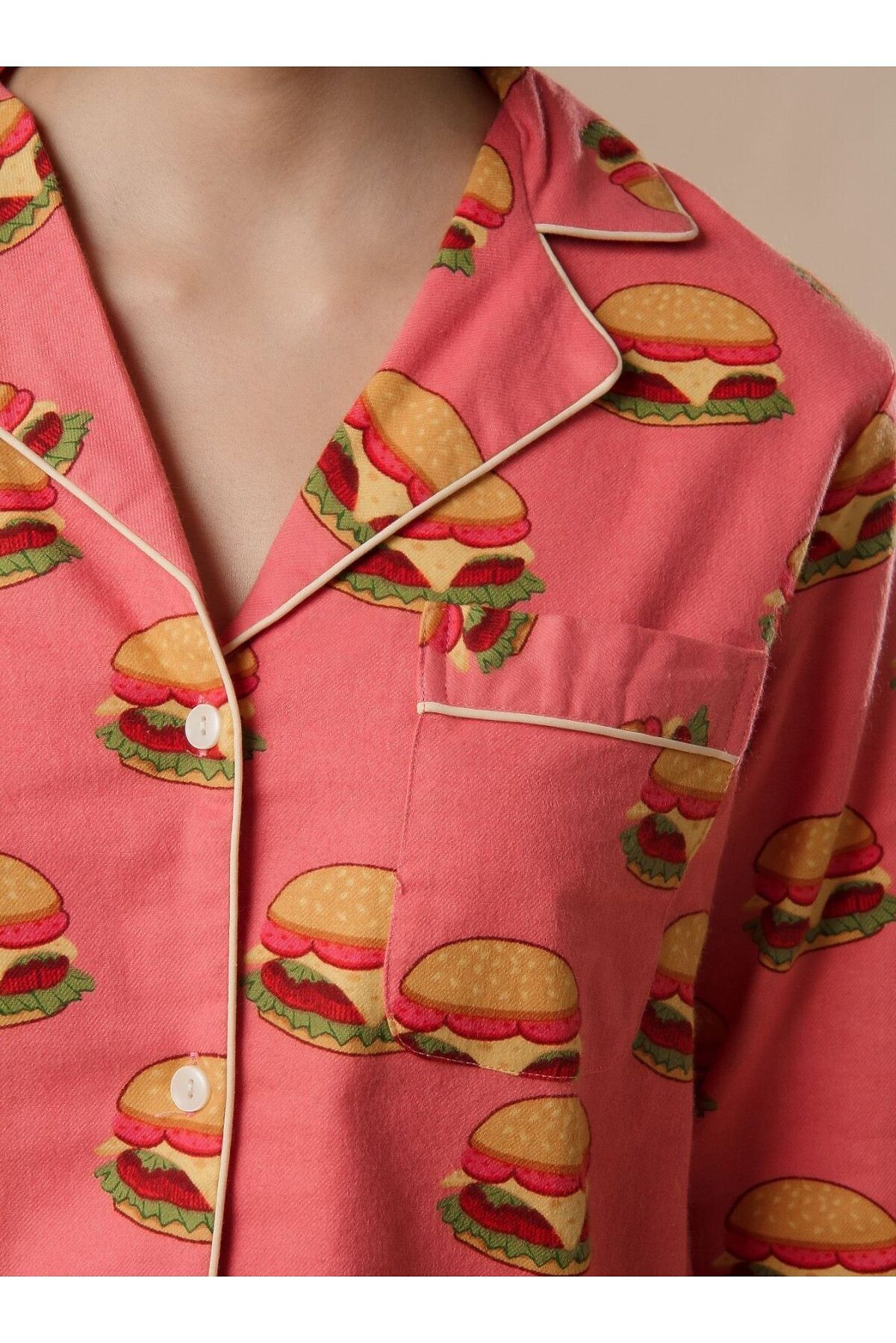 Домашняя пижама от торговой марки Индефини. В комплекте рубашка и брюки. Рубашка из хлопка, оранжево-персикового цвета, с принтом, с длинными рукавами, с воротником-отворотом, с кармашком на груди, с обрамлением, на пуговичках, прямая, свободного кроя. Брюки из хлопка, оранжево-персикового цвета, с принтом, прямые, свободного кроя, с обрамлением, на мягкой резинке, с регулирующей лентой.