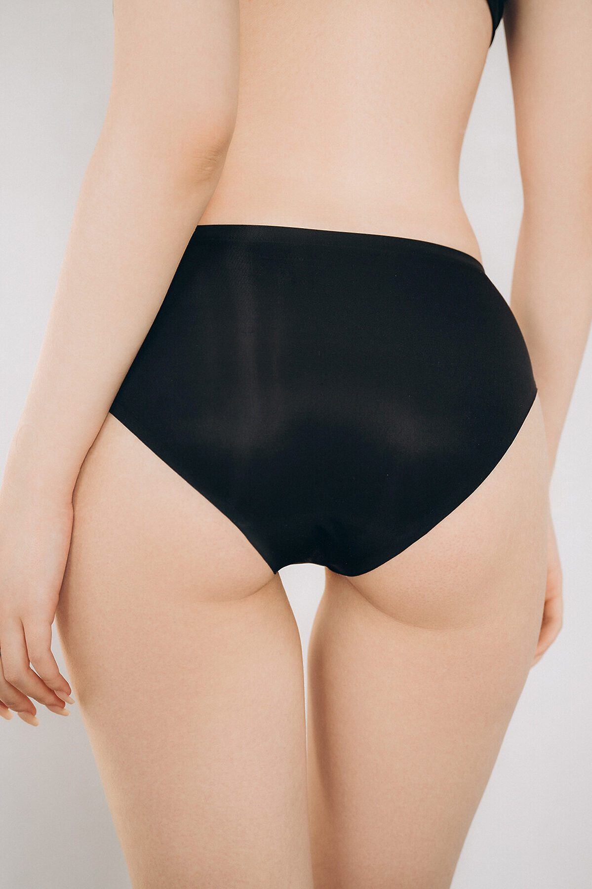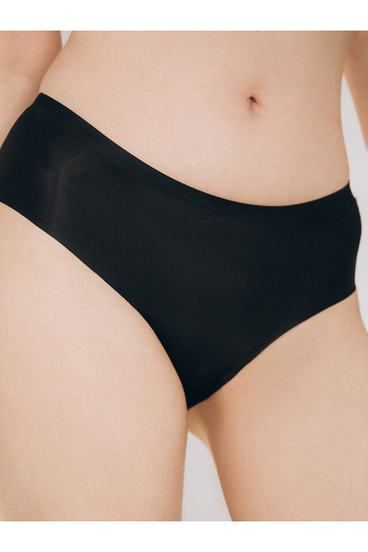 Трусы слипы женские бесшовные, изготовленные из полиамида, выполнены в классическом черном цвете. Трусы слипы средней посадки имеют на талии мягкую эластичную резинку. Они подчеркивают контур фигуры, создавая соблазнительный силуэт.