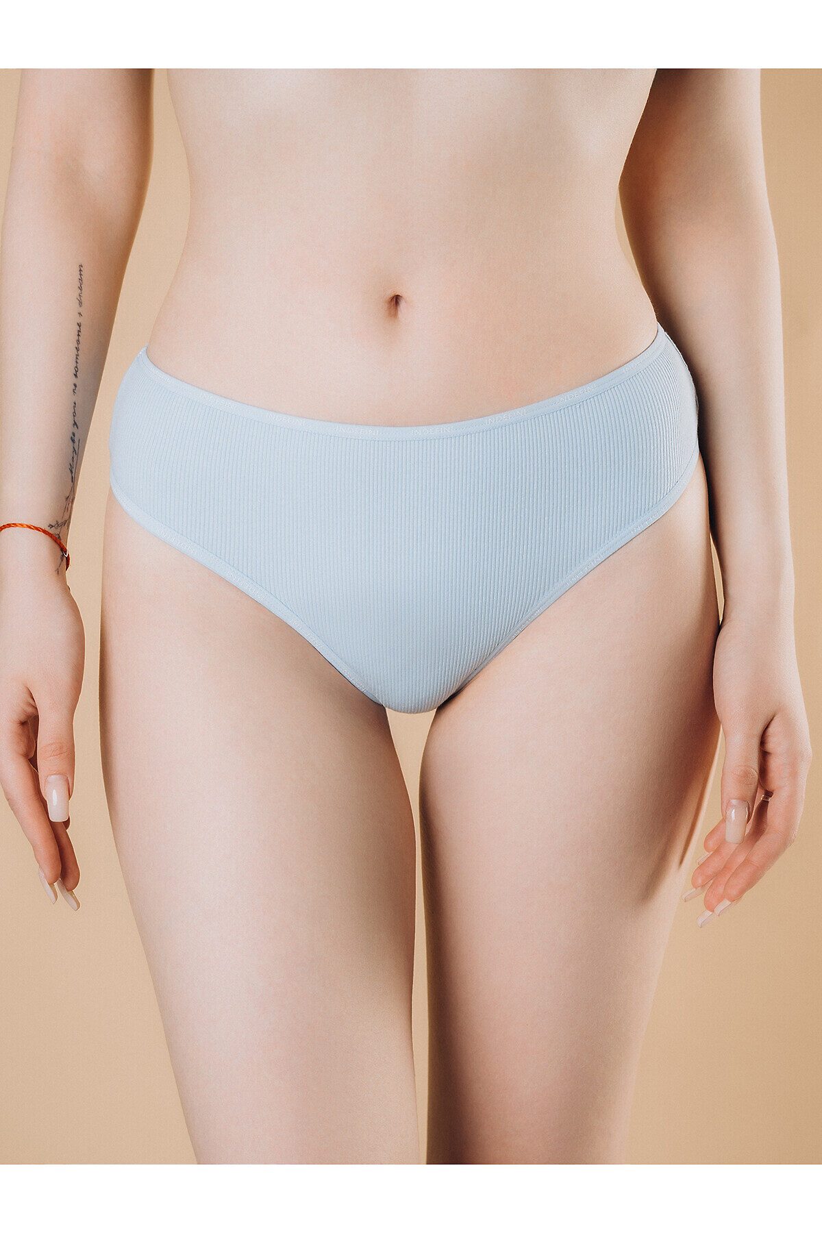 Стринги женские изготовлены из хлопка и выполнены в голубом цвете с фактурой ткани в рубчик. Мягкая эластичная резинка, украшенная надписью INDEFINI, расположена на талии. Трусы стринги имеют среднюю посадку.