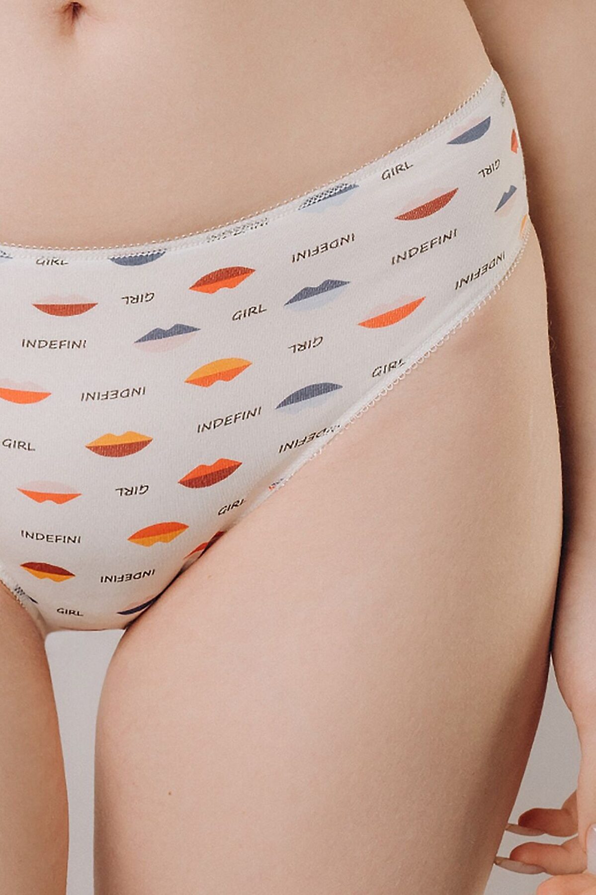 Трусы слипы женские 3058LUB бренда Indefini изготовлены из хлопкового материала. Имеют среднюю посадку и мягкую эластичную резинку на талии, удерживающую трусы во время носки. Выполнены в классическом белом цвете с нанесенным абстрактным принтом.