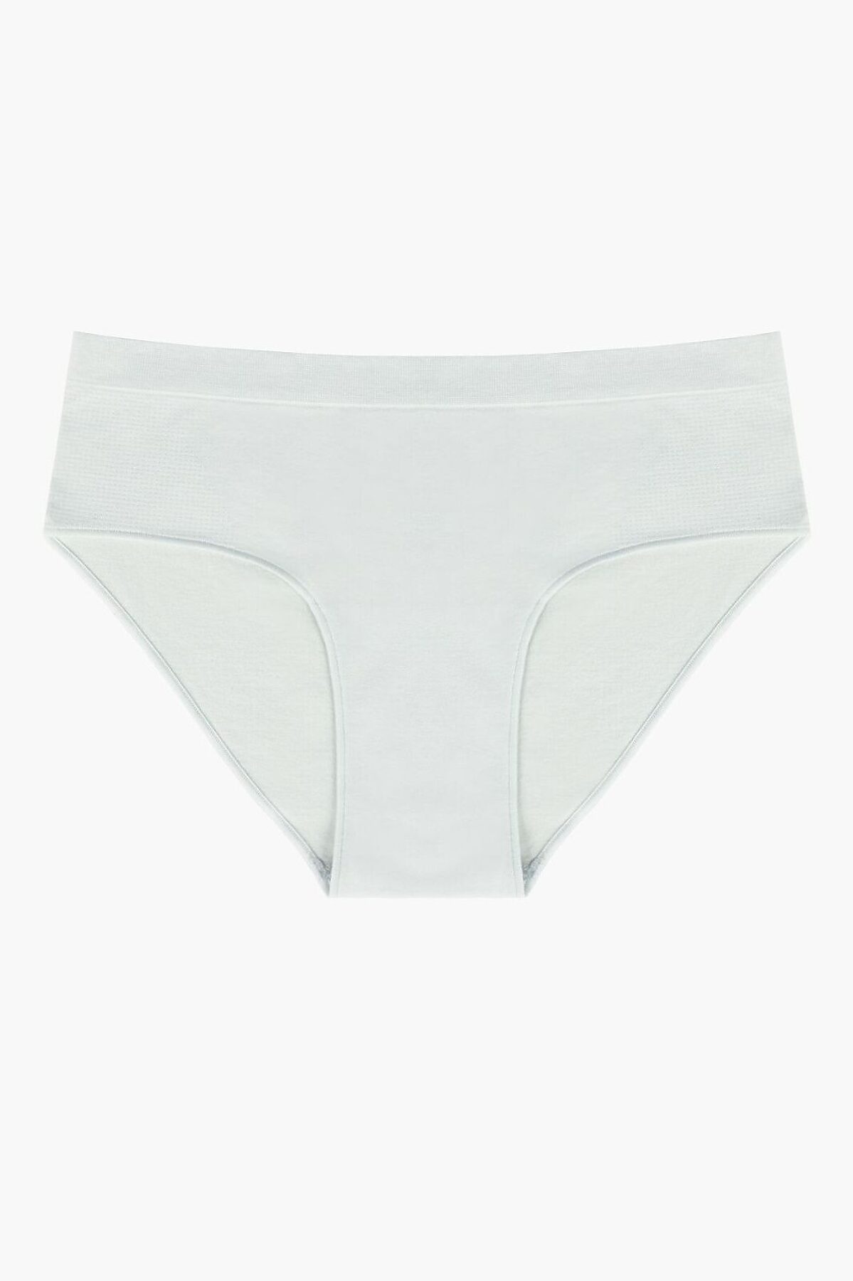 Трусы-слипы серого цвета с высокой посадкой, изготовлены из полиамида, дополнены гигиенической хлопковой ластовицей. Вырезы для ног обработаны плоским швом вподгибку с резинкой, широкий пояс на резинке плотно фиксируется на теле.