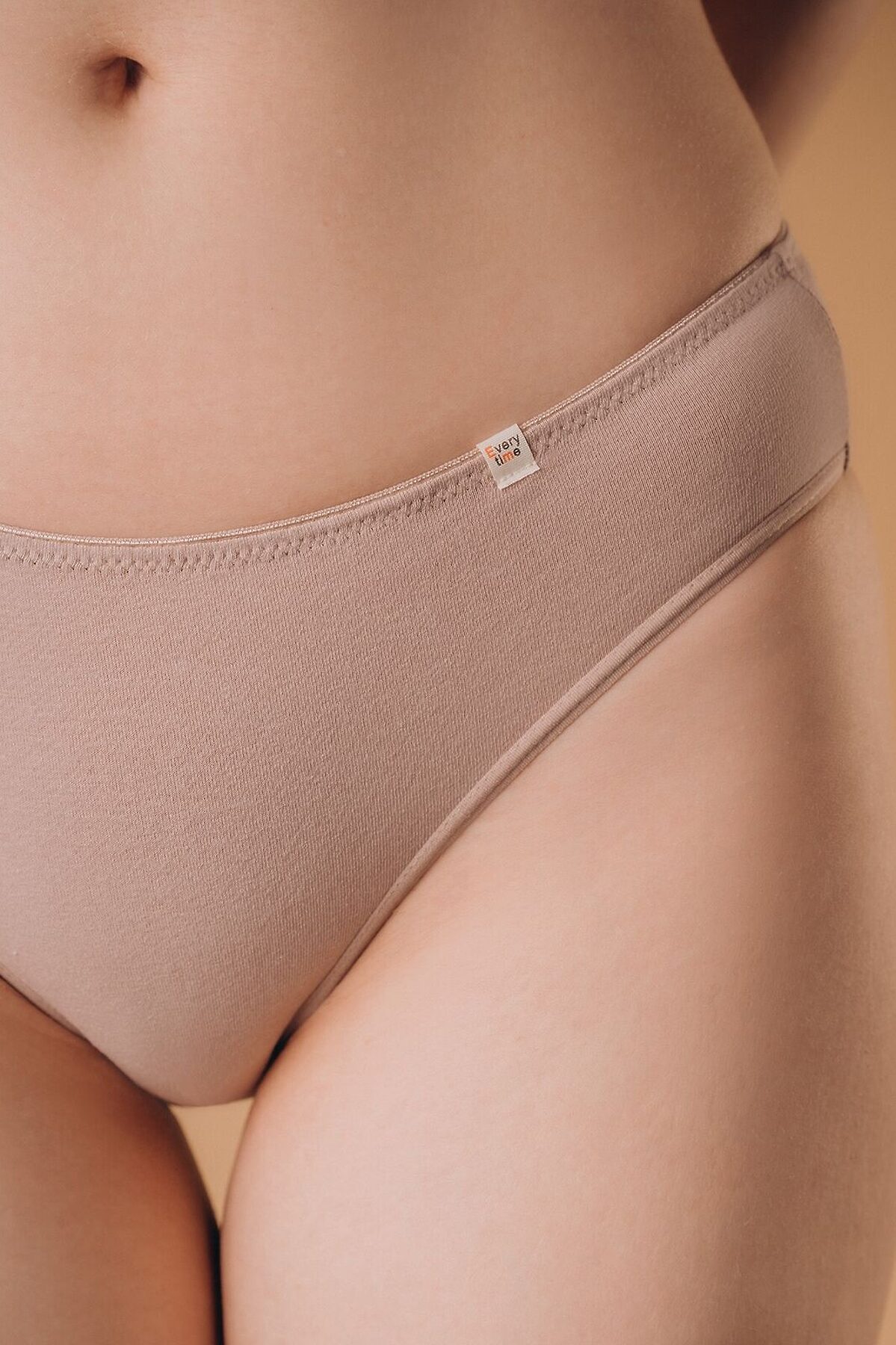 Трусы слипы женские изготовлены из хлопка. Они имеют среднюю посадку и мягкую фиксирующую резинку на талии. Внутренняя сторона трусов дополнена хлопковой ластовицей. Трусы слипы выполнены в однотонном бежевом цвете.