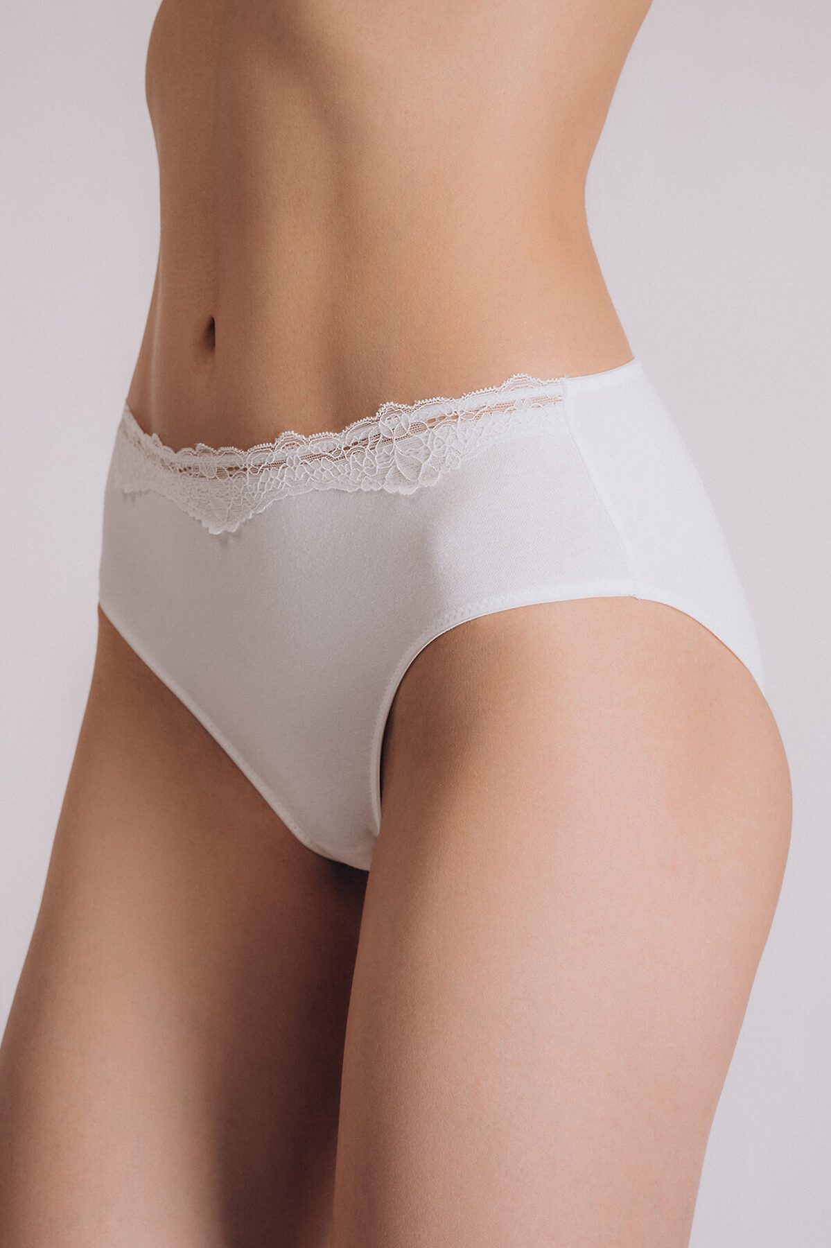 Трусы слипы женские изготовлены из хлопка, выполнены в классическом белом цвете. Трусы имеют среднюю посадку и тонкую резинку на талии. На внутренней стороне трусов имеется хлопковая ластовица. Резинка обрамлена цветочным кружевом.