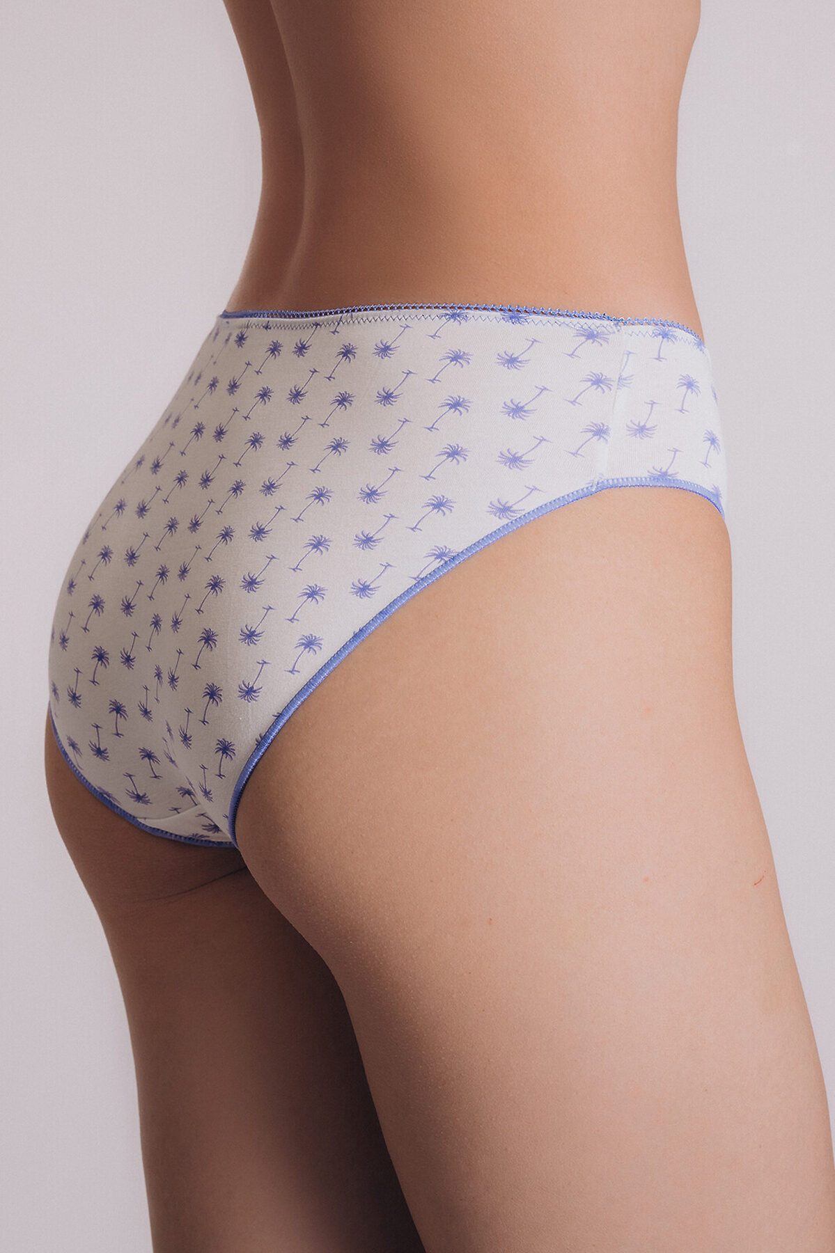 Мягкие и удобные трусы из натурального хлопка. Сиреневая резинка и веселый принт с пальмами добавляют яркий акцент. Хорошо тянутся, не натирают и приятны к телу. Отлично подойдут для повседневной носки, дома или отдыха.