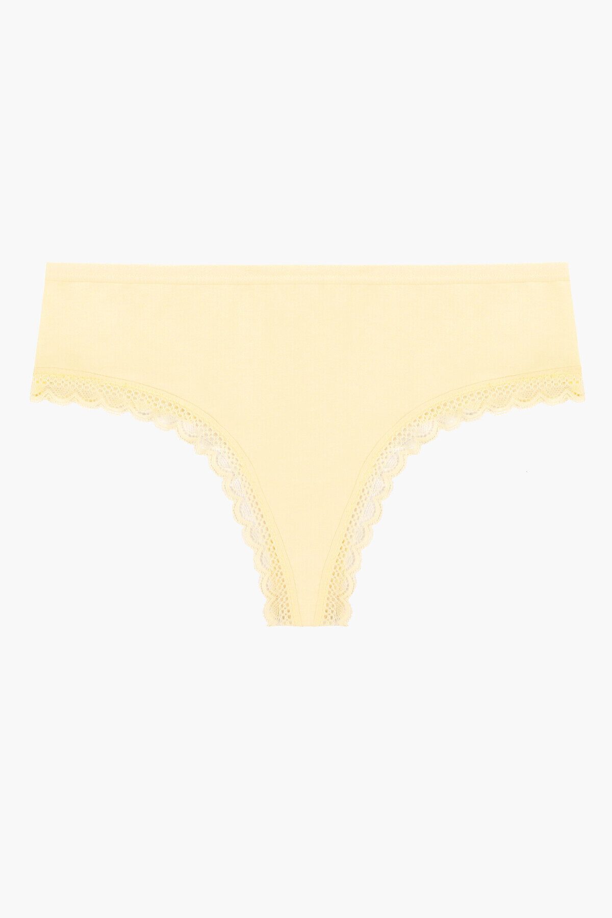 Нежные стринги светло-желтого оттенка из мягкого хлопка, украшенные изящным кружевом. Модель оформлена ажурной окантовкой по контуру и декоративной кружевной вставкой с цветочным узором на задней части. Особенности: ✔ Кружевная окантовка по линии талии ✔ Ажурная цветочная вставка на спине ✔ Узкая ластовица из хлопка для комфорта ✔ Натуральный хлопок Стринги сочетают практичность хлопка с элегантностью кружева, создавая баланс между комфортом и эстетикой.