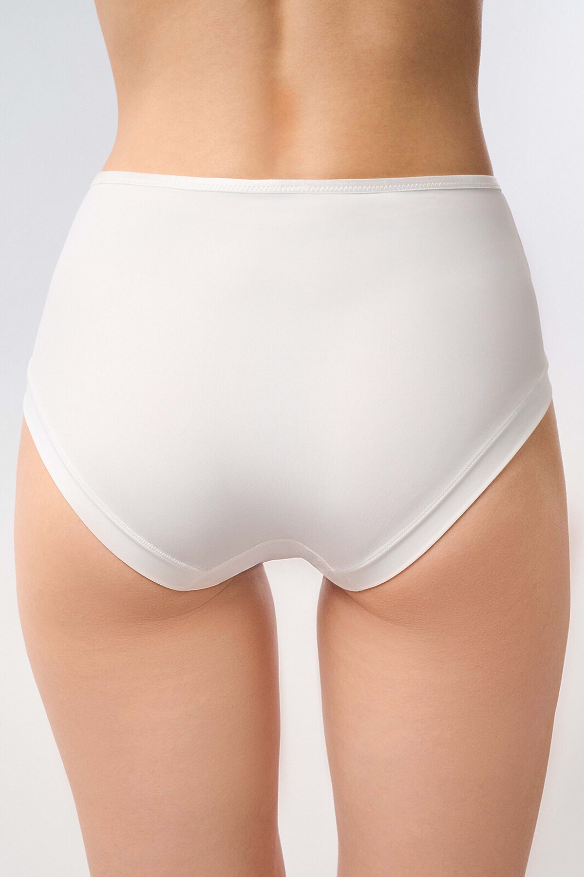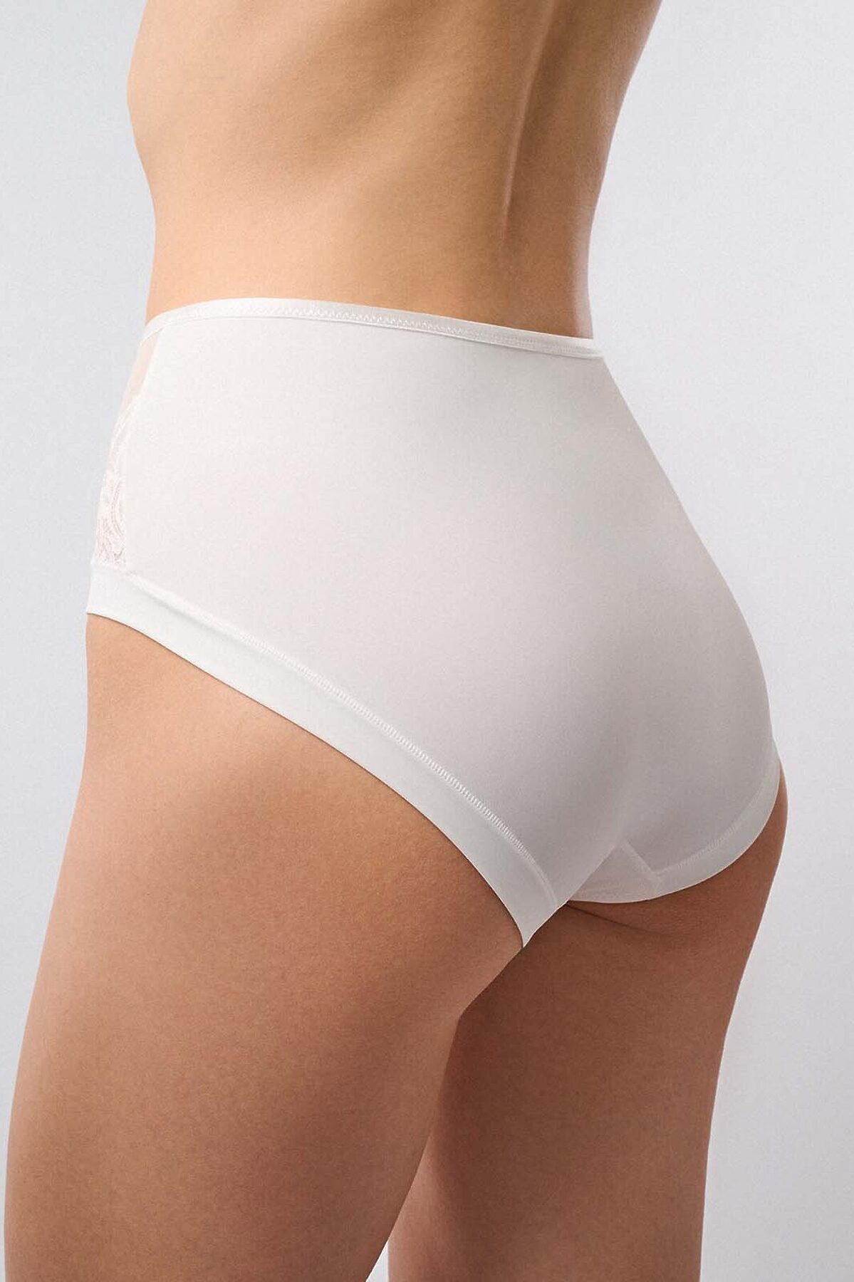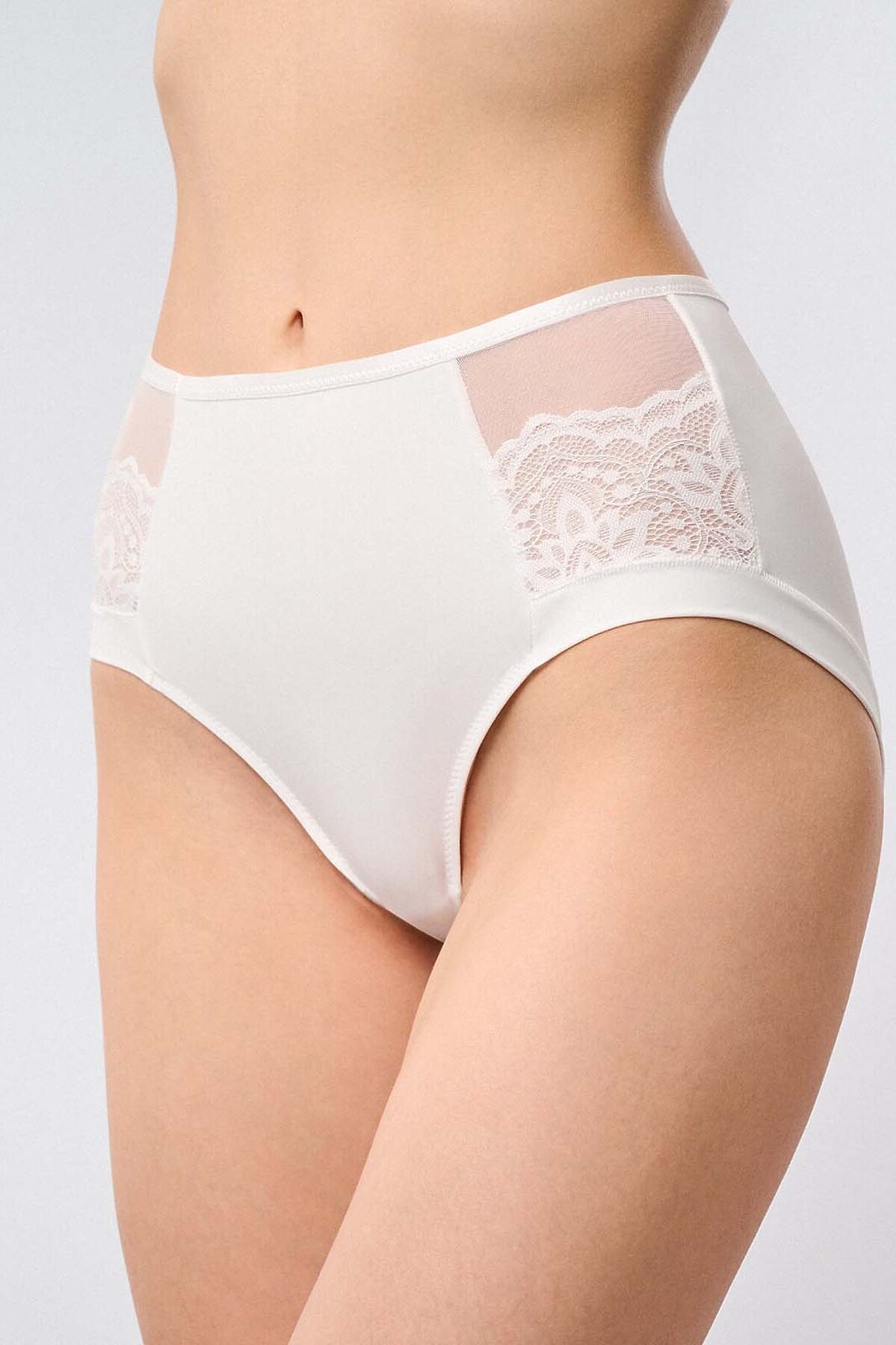 Белые женские кружевные трусы с высокой посадкой.