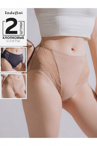 Набор включает в себя двое женских трусов-слипов, изготовленных из хлопка. Одни трусы выполнены в классическом белом цвете, а вторые в сером цвете. Каждые трусы средней посадки в наборе имеют резинку на талии, обеспечивающую комфортную посадку без давления. Вырезы трусов с кружевной отделкой. Ластовица из хлопка.