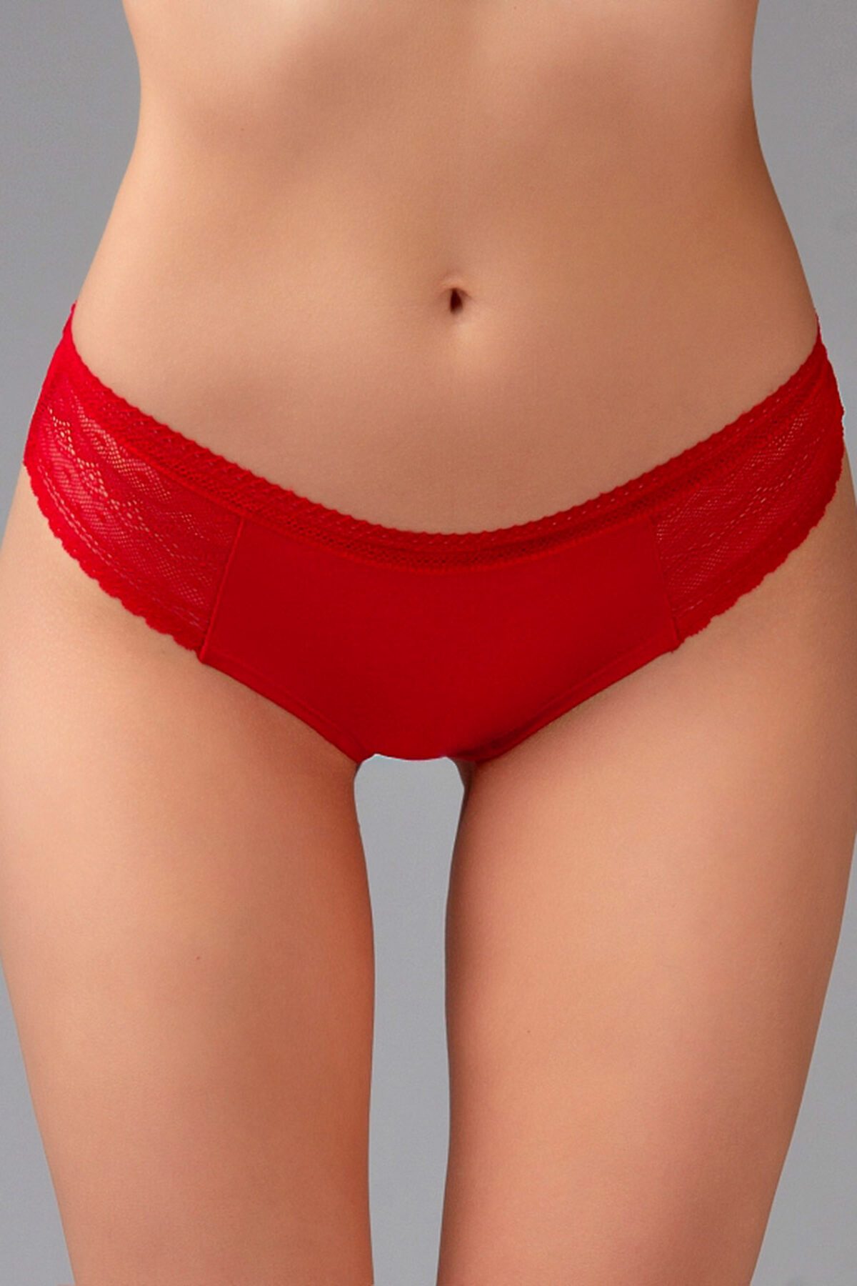 Женские трусы от торговой марки Индефини. Трусы-танга из хлопка, красного цвета, с кружевными вставками и обрамлением, средней посадки, на мягкой резинке.