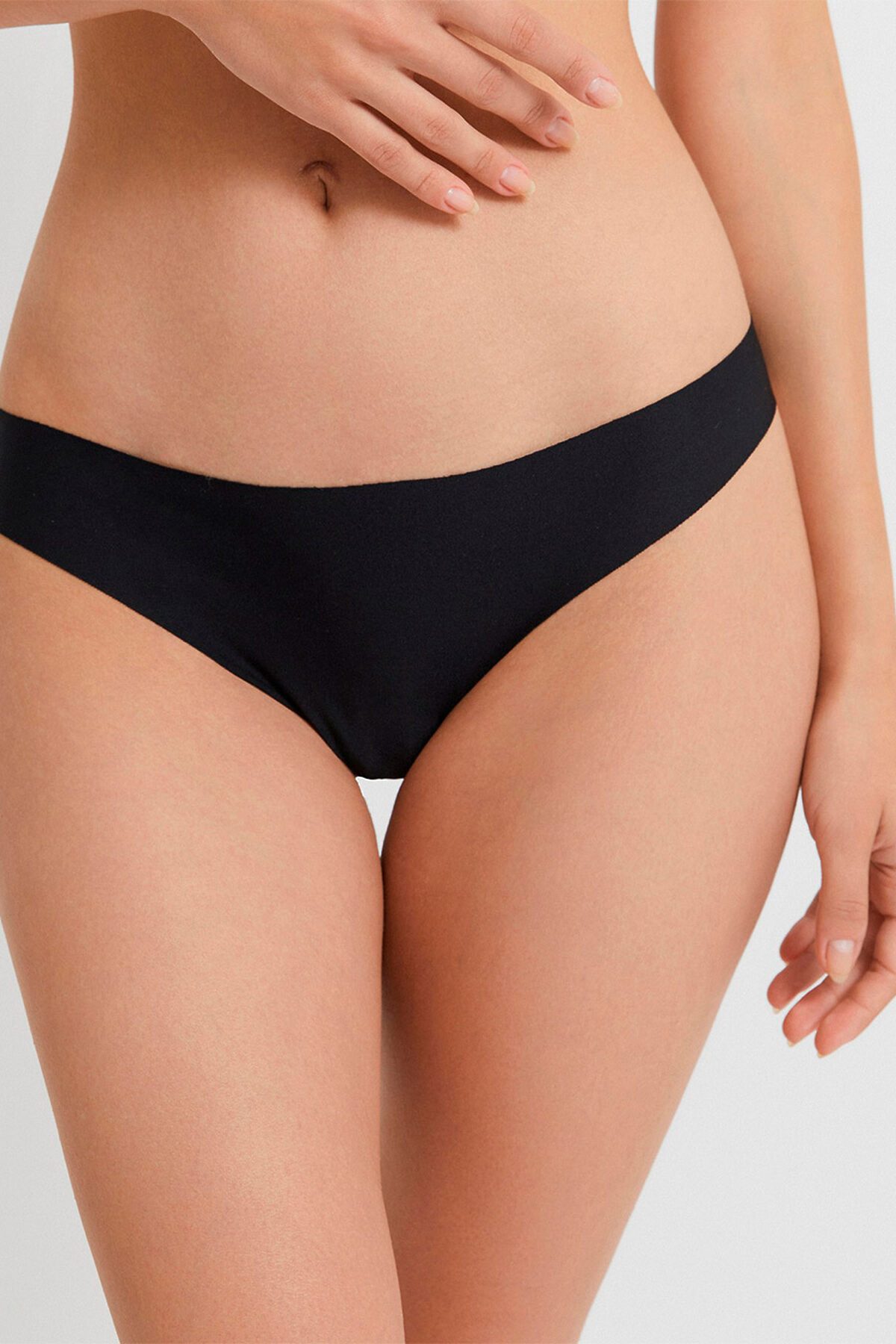 - Базовые трусики-стринг из эластичной ткани. - Детали трусиков не обработаны по срезам, что делает изделие невидимым под одеждой. Черный