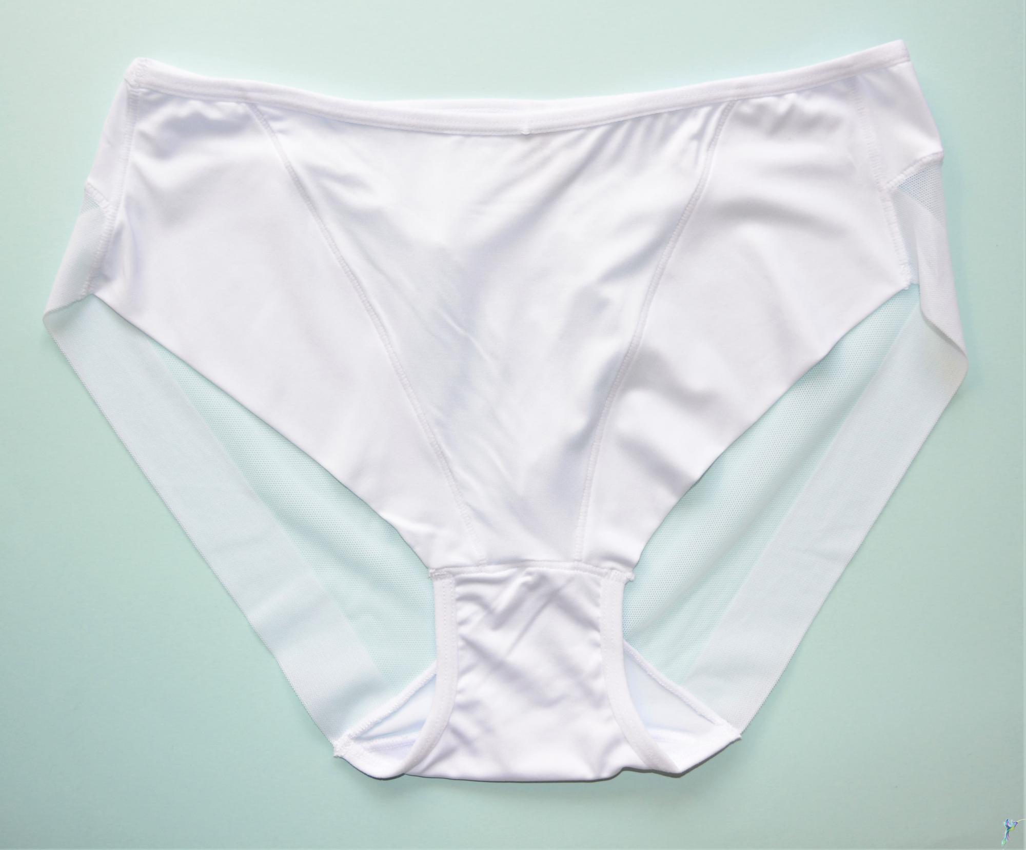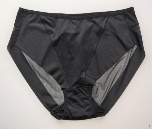 Задняя половинка выполнена из вставок сеточки с уплотнением по нижнему краю, что отлично приподнимает и  поддерживает ягодицы.