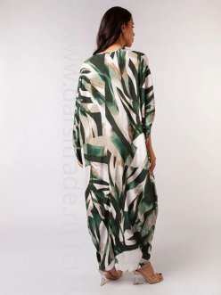 Туника свободного кроя с широкими нисподающими рукавами. Оригинальный нюанс - кулиска спереди , позволяющая регулировать тунику по длине. Туника имеет максимальную длину, что визуально вытягивает женский силуэт, деликатно маскируя возможные изъяны фигуры. 100% вискоза