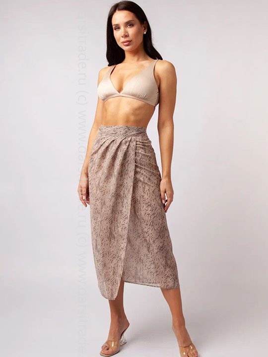 Легкая юбка-парео с мягкими складками спереди, с длинным поясом, позволяющим разным способом завязывать его и тем самым изменять вид парео - юбка или туника. Легкий креп-шифон приятен к телу. 100% полиэстер (Креп-шифон)