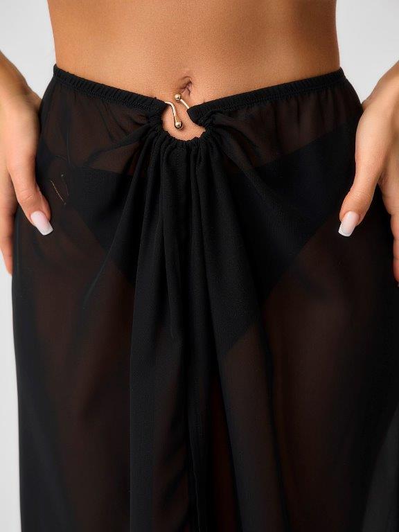 Длинная юбка из синтетического шифона на резинке по линии талии украшена металлической пряжкой золотого цвета.