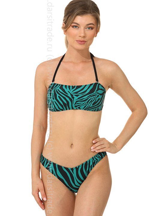 Раздельный купальник: бюстгальтер-бандо с мягкой чашкой, без вкладышей, и трусики-слип. Застежка - поворотный замок. 80% полиамид/ 20% эластан